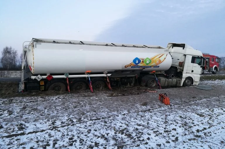 W środę (12 stycznia) w miejscowości Kobylany na prostym odcinku drogi kierujący ciągnikiem siodłowym MAN z naczepą cysterna paliwowa, zjechał na pobocze i przechylając zestw na prawy bok. Był poza pasem drogowym. Samochód przewoził około 30000 litrów oleju napędowego. Na miejsce akcji zadysponowano z firmy cysternę zastępczą do przepompowania paliwa.