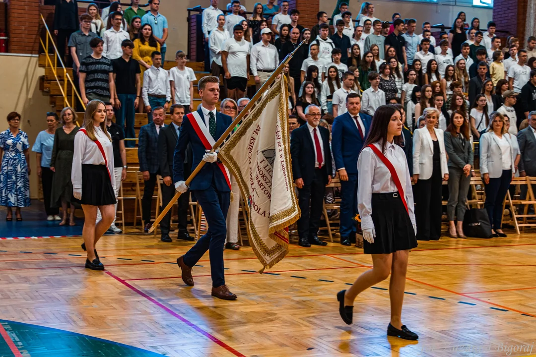 19 czerwca 2023 roku mury naszej szkoły na nowo wypełniła opowieść o teraźniejszości i przeszłości. W myśl hasła: Niech zawróci bieg wskazówek zegara… rozpoczęliśmy doniosłe, ale i radosne świętowanie. Tradycja i teraźniejszość ponownie spotkały się, a wnętrza szkoły wypełniła podniosła radość świętowania: Polonez, sztandar, odświętne biel i czerń…