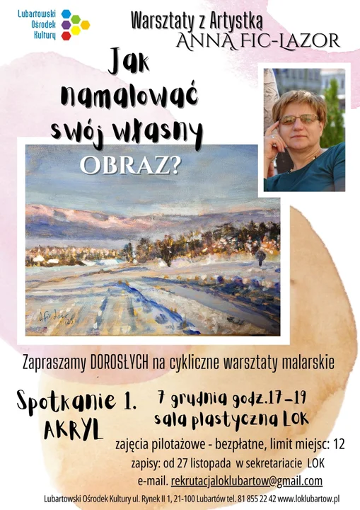 W środę ruszają w LOK prowadzone przez Annę Fic - Lazor warsztaty malarstwa dla osób dorosłych "Jak namalować swój własny obraz?"