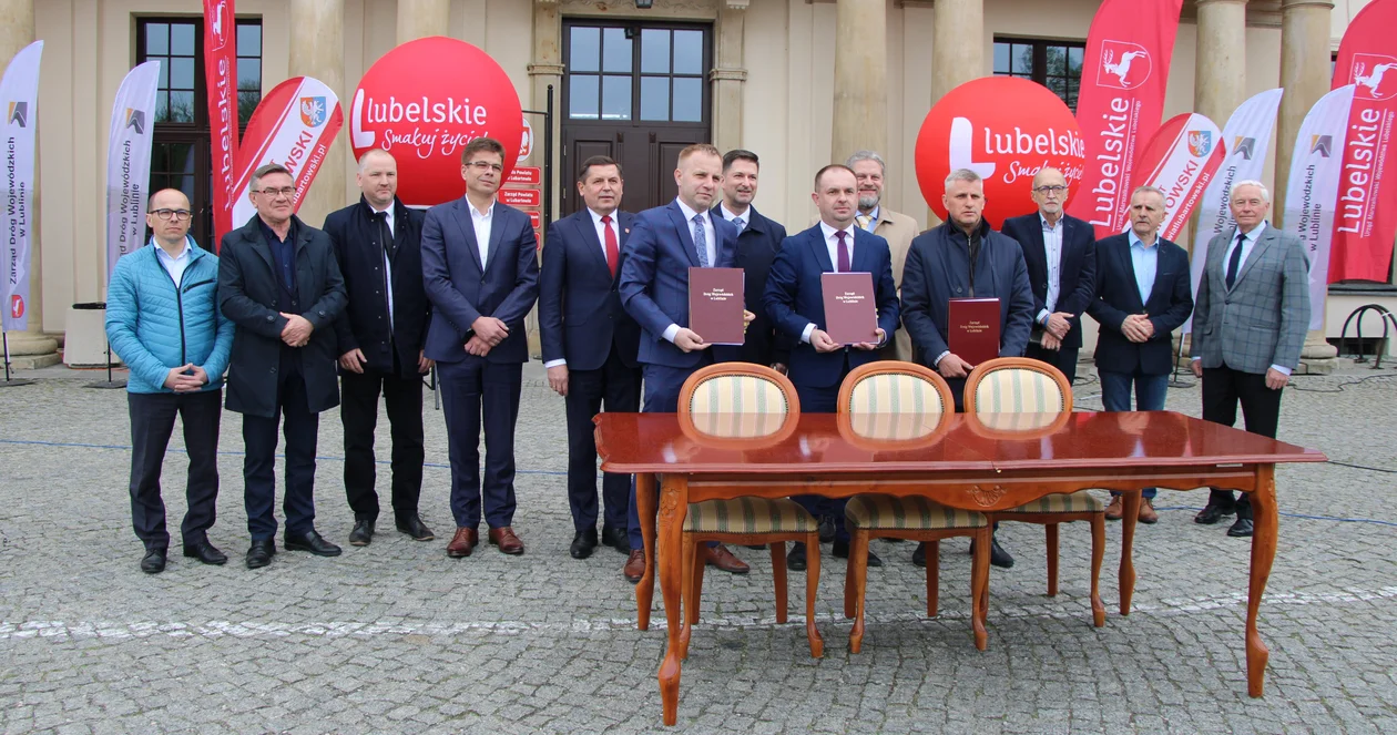 Umowy podpisano przed lubartowskim starostwem. Byli obecni m.in. poseł Sylwester Tulajew, starosta lubartowski Tomasz Marzęda, przedstawiciele rady i zarządu powiatu, przedstawiciel marszałka Województwa Lubelskiego Janusz Bodziacki, zastępca burmistrza Kamionki Grzegorz Szymanek, burmistrz Parczewa Paweł Kędracki, dyrektor Zarządu Dróg Wojewódzkiech Paweł Szumera, szef lubartowskiego PiS Andrzej Kardasz, prezes PRD Lubartów Janusz Białek, Marcin Zieliński z firmy STRABAG, kandydat na burmistrza Lubartowa Tadeusz Małyska.