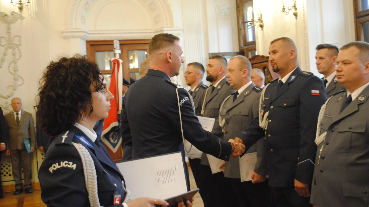 Zastępca Komendanta Wojewódzkiego Policji inspektor Robert Michna wraz z komendantem powiatowym mł. inspektorem Tomaszem Dejerem podczas obchodów Święta Policji wręczali awanse zasłużonym policjantom. Otrzymali je:
