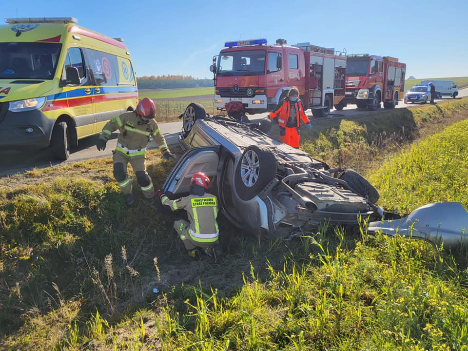 Straż pożarna otrzymała zgłoszenie około godz. 11. 26. Na drodze między Pałecznicą a Tarłem Kolonią doszło do dachowania samochodu osobowego.