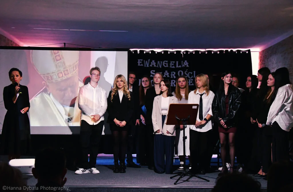 Uczniowie biorący udział w apelu, przygotowanym przez ks. Pawła Kościuka i p. Pawła Pasikowskiego, przypomnieli , jaką rolę odegrały starość i cierpienie w życiu Jana Pawła II - papież nie tylko o tych wartościach mówił, ale przeżywał je na oczach całego świata.