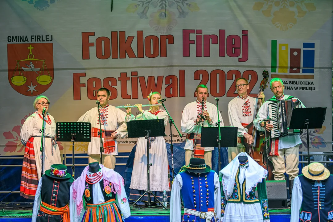 W sobotę 16.07.22 w parku w Firleju odbył się "Folklor Firlej Festiwal 2022" , który był kolejnym wydarzeniem przygotowanym przez Gminną Bibliotekę Publiczną w tym sezonie. Chociaż pogoda nie rozpieszczała, nastroje wśród uczestników jak i wykonawców były przednie. Na scenie wystąpili: Kapela "To i Owo" z Kamionki, Kapela "Bachórzanie" z Ziemi Rzeszowskiej, Kapela Zespołu Pieśni i Tańca Ziemi Chełmskiej, oraz gwiazda wieczoru zespół "Trebunie Tutki" z Białego Dunajca. Dzięki tym wspaniałym artystom na nowo można było odkryć piękno naszego folkloru oraz bogactwo muzyki ludowej z różnych regionów Polski. Nawet przelotny deszcz nie przeszkodził w śpiewaniu popularnych pieśni ludowych, czy zbiorowych tańcach – bo przy takiej muzyce nie można było ustać spokojnie. Występom towarzyszyła wystawa strojów ludowych reprezentujących różne regiony Polski: lubelski, rzeszowski, podlaski, krakowski i śląski. Wystawę tę można oglądać w Gminnej Bibliotece Publicznej w Firleju jeszcze do 27 lipca 2022r.