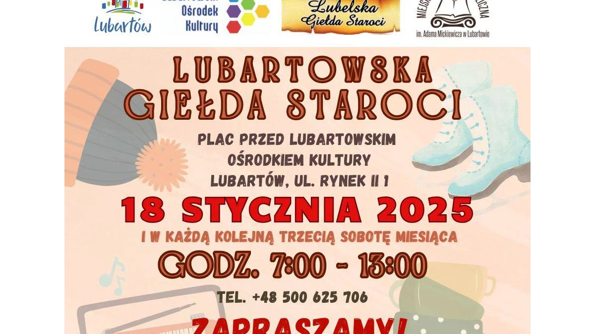 Giełdy staroci w Lubartowie odbywaja się w każdą trzecią sobotę miesiąca. 18 stycznia będzie można ją odwiedzać od godz. 7. Kolekcjonerzy będą mogli obejrzeć i kupić stare monety, miliaria, płyty, oszdobne figurki i naczynia.
