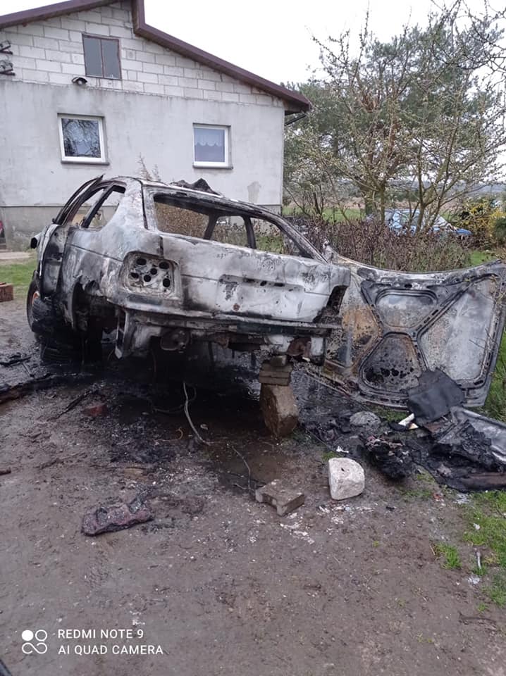 Po przybyciu na miejsce zastępów straży pożarnej okazało się, że pali się samochód osobowy marki BMW znajdujący się na posesji.