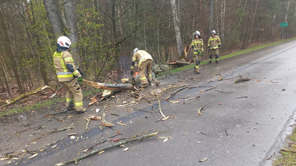 Kilkadziesiąt minut później, około 8.56, usuwali powalone drzewa w Skrobowie. Przed godz. 10 usuwali kolejne, tym razem w Nododworze - Piaskach. Przed godz. 15 ponownie interweniowali w Skrobowie.