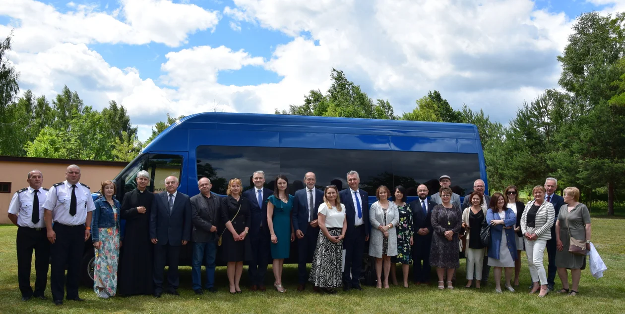 Podczas uroczystości Jubileuszu 10- lecia został poświęcony przez ks. proboszcza Stanisława Kluska nowy autobus marki IVECO, a Pan Józef Gruszczyk- burmistrz Ostrowa Lubelskiego uroczyście przekazał klucze na ręce Pani Edyty Szkuat- kierownik ŚDS.