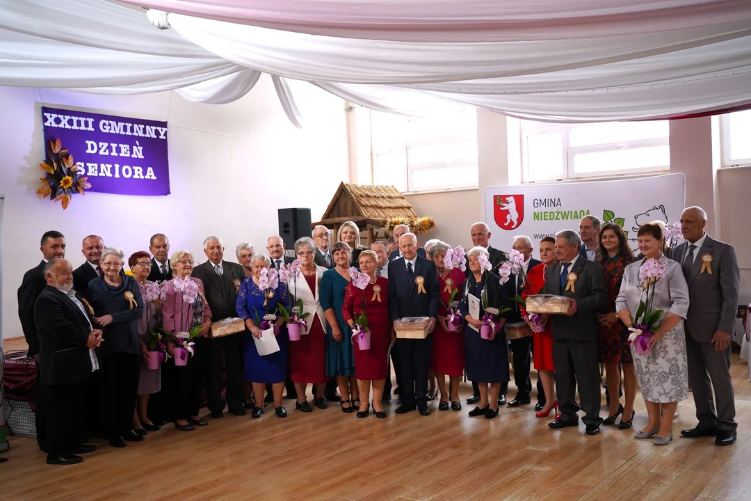 Podczas uroczystości Wójt Gminy Niedźwiada Pan Marek Kubik wręczył Jubilatom pamiątkowe kotyliony, dyplomy, kwiaty i drobne upominki. Nie zabrakło również pamiątkowych zdjęć z jubileuszowego spotkania. W uroczystości dekoracji Dostojnych Jubilatów uczestniczyli Zastępca Wójta Gminy Niedźwiada Pani Małgorzata Jaksim i Przewodniczący Rady Gminy Niedźwiada Pan Tomasz Wiącek. Parom, które nie mogły uczestniczyć w jubileuszowym spotkaniu, przedstawiciele władz samorządowych złożą gratulacje i życzenia oraz wręczą kwiaty