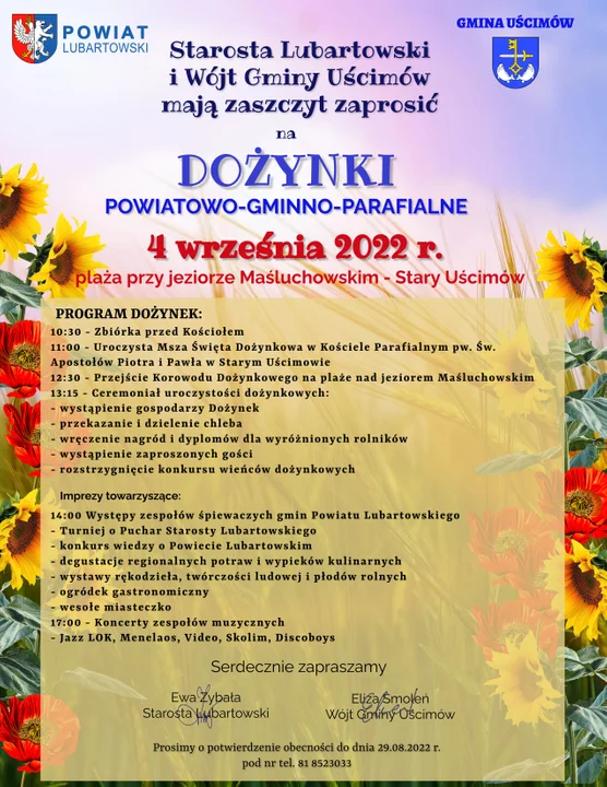 11:00 - Uroczysta Msza Święta Dożynkowa w Kościele Parafialnym pw. Św. Apostołów Piotra i Pawła w Starym Uścimowie