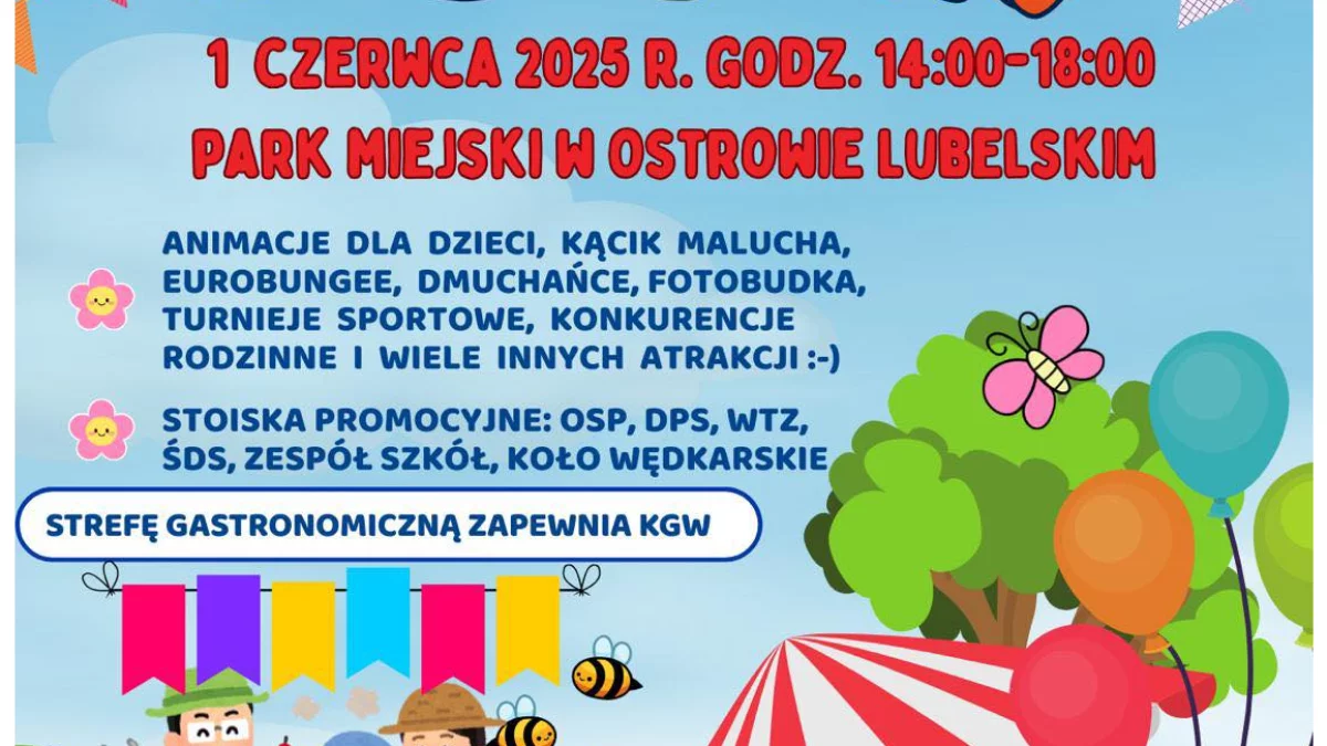 Dzień Dziecka w parku miejskim w Ostrowie Lubelskim rusza jutro o godz. 14. W programie animacje dla dzioeci, eurobungee, fotobudka, dmuchańce, konkursy i wiele innych atrakcji.