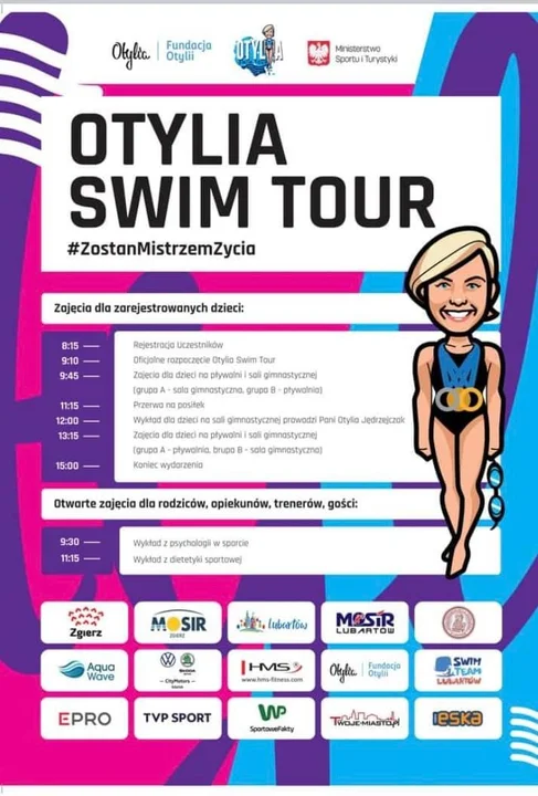 Mistrzyni w pływaniu Otylia Jędrzejczak odwiedzi Lubartów i przeszkoli młodych pływaków w ramach Otylia Swim Tour. Wydarzenie, którego partnerem jest Miasto Lubartów i Swim Team Lubartów odbędzie się 8 maja na basenie MOSiR Lubartw i sali gimnastycznej SP 3 w Lubartowie.