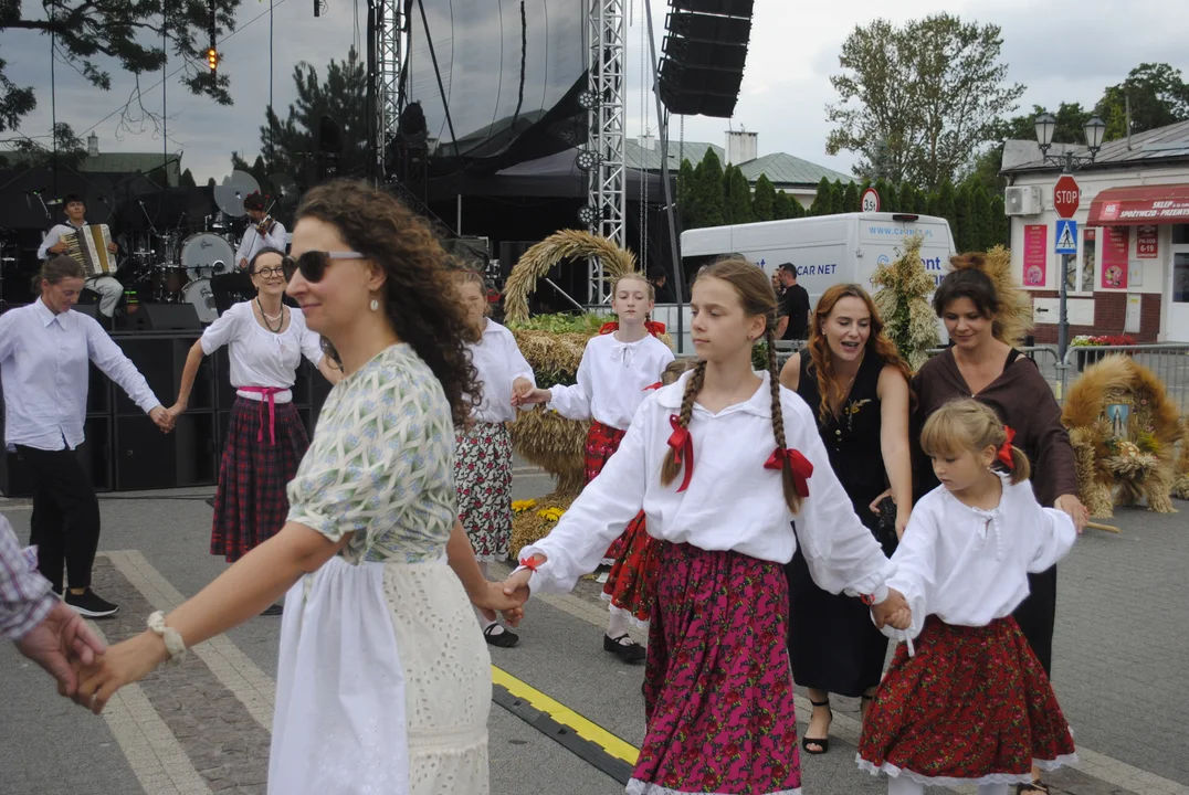 Kapelaz Borówka gra ludową muzyke, w tym taneczną. skorzystała z tego część publczności i członkiń Kół Gospodyń Wiejskich. Przed sceną zaczęły się tańce.
