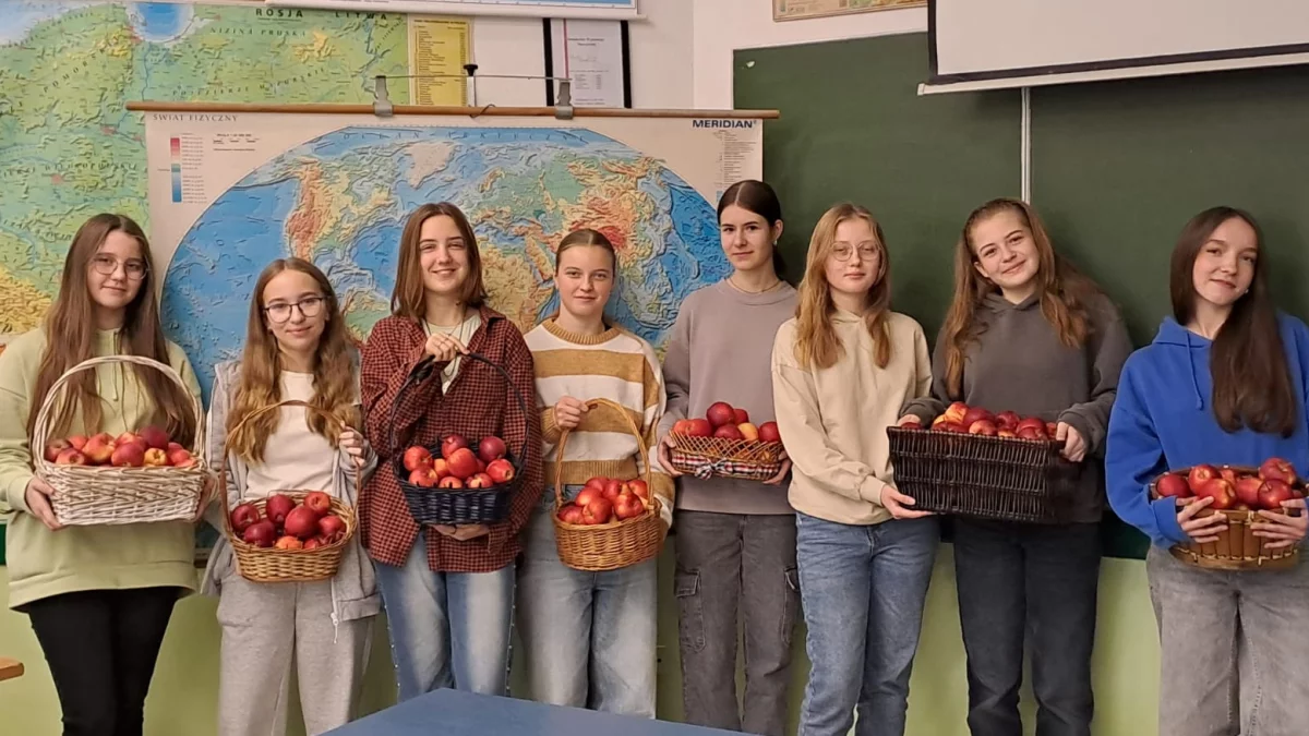 W piątek 8 listopada dziewczęta z klasy 2m o profilu matematyczno-fizycznym pod opieką nauczycielki geografii p. Moniki Jarosz przeprowadziły w szkole miłą akcję związaną z promowaniem zasad zdrowego jedzenia, dobrych nawyków żywieniowych oraz regularnego spożywania posiłków. Na ten dzień uczennice przygotowały materiał edukacyjny kierujący uwagę na zwiększenie świadomości na temat zdrowego jedzenia. W celu zwielokrotnienia zainteresowania problemem prawidłowego żywienia zorganizowały prosty i zdrowy poczęstunek w postaci polskich jabłek oraz ankietę on-line odnośnie nawyków żywieniowych młodzieży. Działanie cieszyło się dużym uznaniem i wpisało się w tradycje naszej szkoły. W poprzednim roku szkolnym było w formie charytatywnego kiermaszu ze zdrowymi przekąskami.