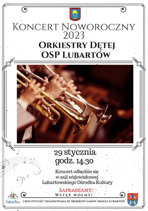 Koncert noworoczny orkiestry dętej OSP Lubartów rozpocznie się 29 stycznia o godz. 14.30 w kinie Lewart. Wstęp wolny.