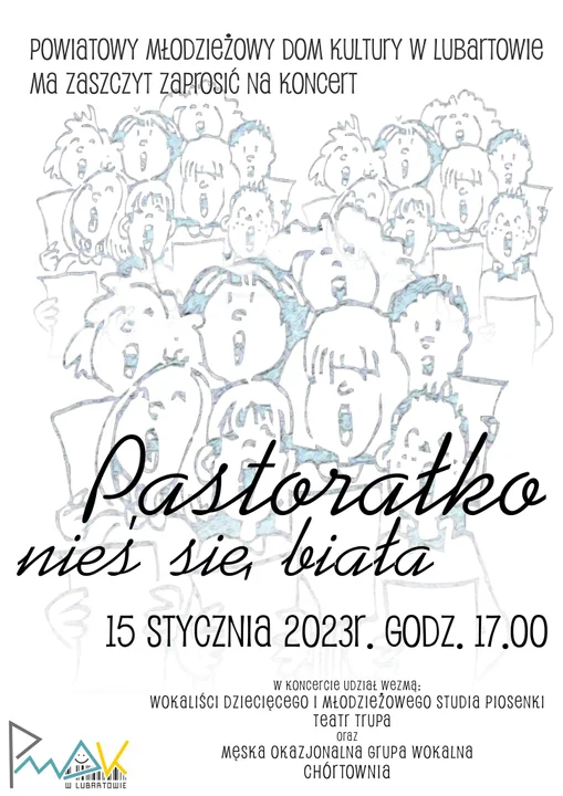 Informacje lubartowskiePMDK zaprasza na koncert "Pastorałko nieś się biała" dzisiaj do sali widowiskowej.