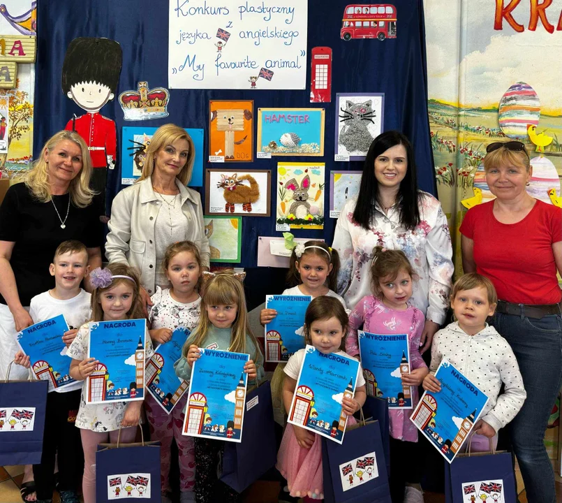 29 kwietnia odbył się konkurs plastyczny z języka angielskiego ,,MY FAVOURITE ANIMAL" - Moje ulubione zwierzę. Dzieci miały za zadanie wykonać prace plastyczną, która będzie przedstawiała ulubione zwierzątko, podpisać je w języku angielskim z pomocą rodziców, a także wypowiedzieć dane słówko po angielsku. Wszystkie prace były kreatywne i pomysłowe. Dzieci wykazały się także ogromnymi zdolnościami manualnymi. Każdy uczestnik otrzymał dyplom i upominki. .