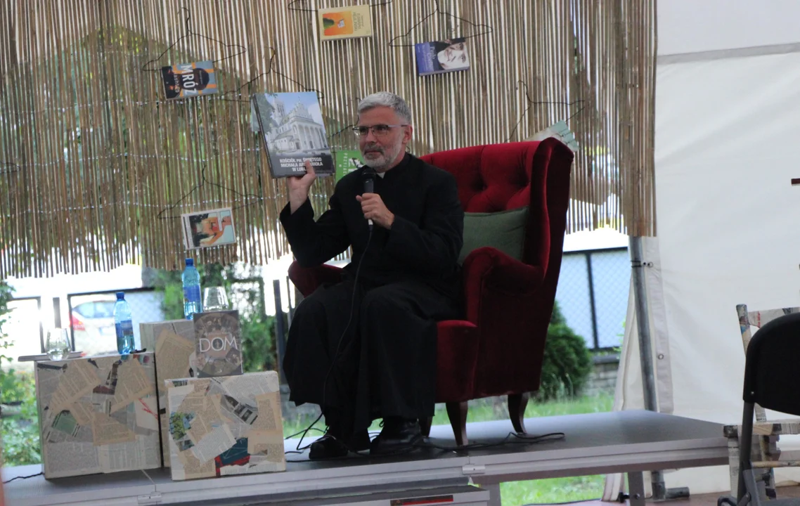 Namiot, w którym odbywa się festiwal Literacko 36, szczelnie wypełniła publiczność. Ks. Arkadiusz Paśnik jest w Lubartowie szczególnie popularny, bo przez wiele lat pełnił tu posługę kapłańską. Jest znany także jako autor wielu książek, takich jak "Obietnica", "Znamię", "Judasz", "Żałoba" i wiele innych. Na pierwszym lubartowskim festiwalu literackim ksiądz mówił m.in. o swojej najnowszej książce, "Dom", o rodzinie niderlandzkiego malarza Hieronima Boscha.