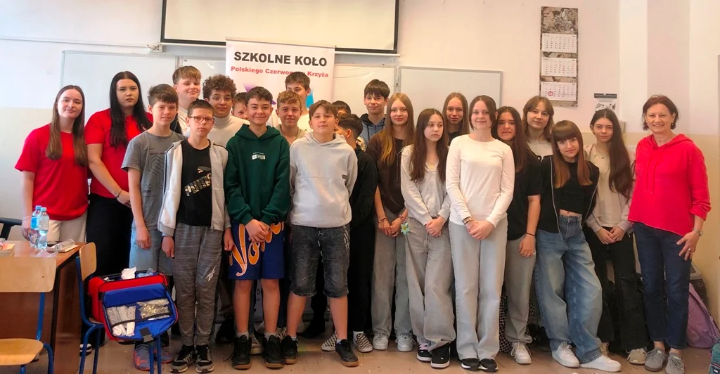 Równolegle w innych klasach uczennice z koła PCK prowadziły zajęcia z zakresu pierwszej pomocy przedmedycznej, skupiając się na nauce resuscytacji krążeniowo-oddechowej oraz ułożenia poszkodowanego w pozycji bocznej ustalonej.