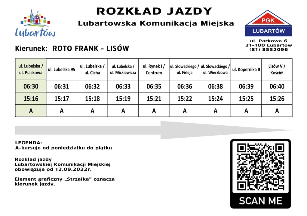 Informacje lubartowskieDwa razy dziennie autobus powiezie pasażerów wzdłuż centralnej magistrali drogowej północ – południe (Lisów-Roto i z powrotem).
