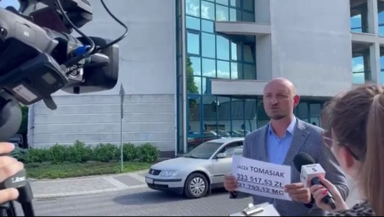 W oświadczeniu podał, że zarobił 116 116, 74 zł w ramach umów o pracę i 7275,32 zł na podstawie umów - zlecenia. Radny twierdzi, że podane kwoty zgadzają się z jego PIT - em, Urząd Skarbowy nie miał do jego oświadzenia zastrzeżeń. W telewizji pokazywane jest tylko zbliżenie na twarz radnego. Widac jednak, że trzyma jakąś kartkę, przez chwilę na ekranie pojawia się napisane na niej nazwisko "Tomasiak".