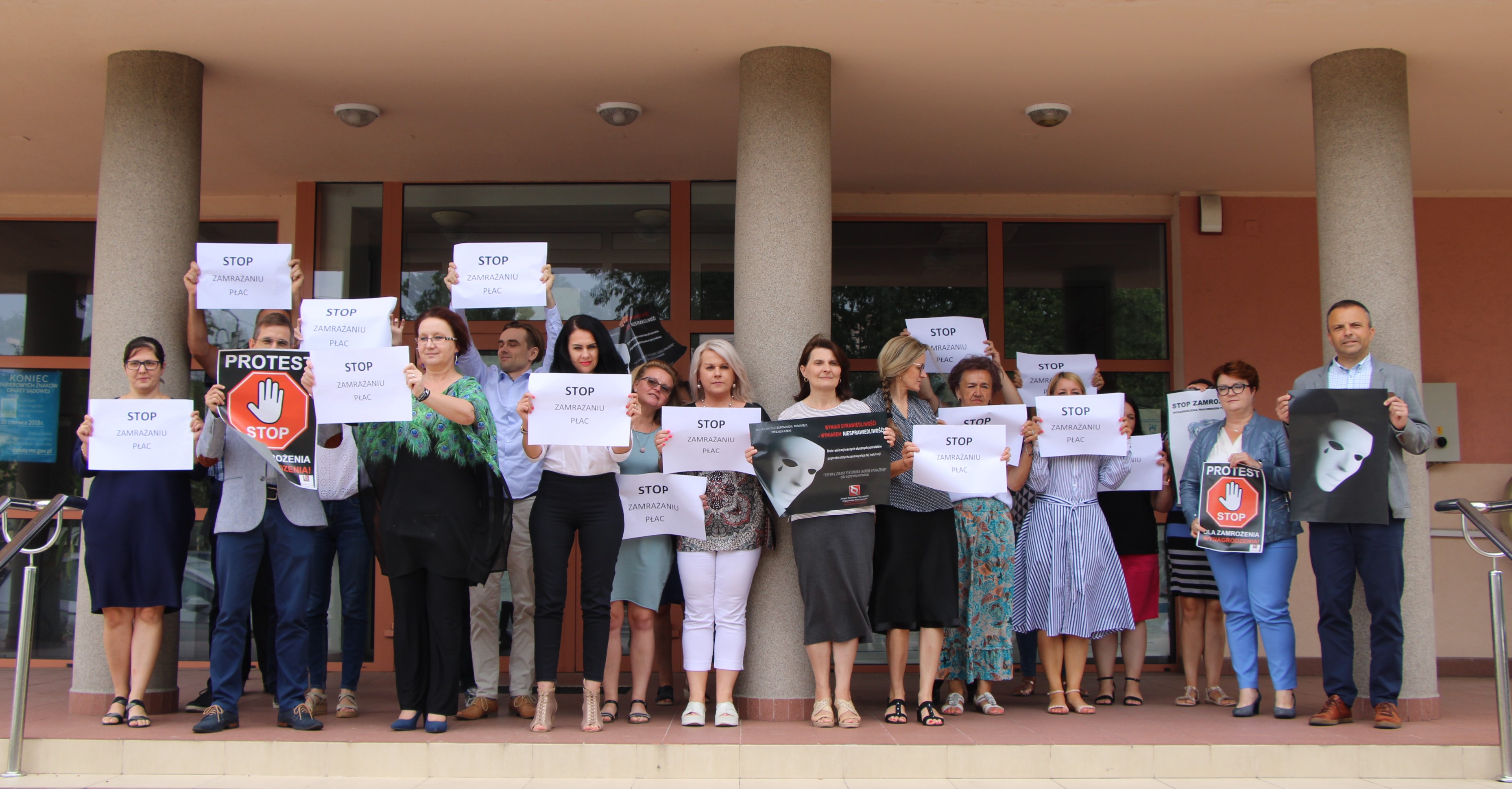 Pracownicy sądu i prokuratury protestują przecow zamrożeniu płac w 2022 r. W każdą środę w czasie przerwy wychodzą z plakatami i hasłami protestacyjnymi przed budynki swoich instytucji. Protestują wspólnie - dwa tygodnie temu i dzisiaj wszyscy uczestnicy protestu zbierali się pod sądem, tydzień temu pod prokuraturą. 10 września mają wziąć udział w ogólnopolskiej akcji protestacyjnej w Warszawie.