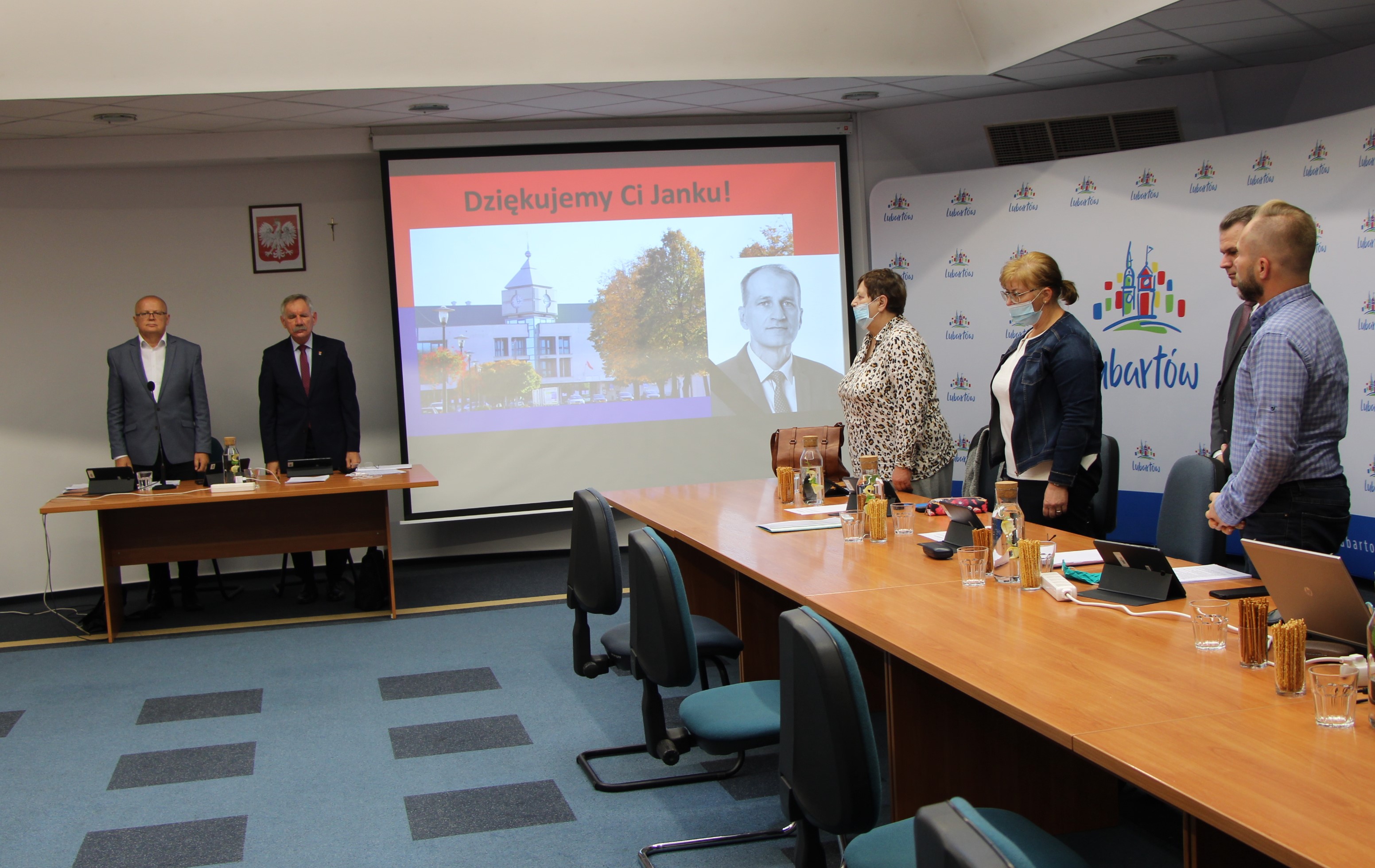 Rozpoczęcie obrad poprzedziła minuta ciszy. Na ekranie wyświetlono baner ze zdjęciem zmarłego radnego Jana Ścisła na tle ratusza i napisem "Dziękujemy Ci, Janku!"