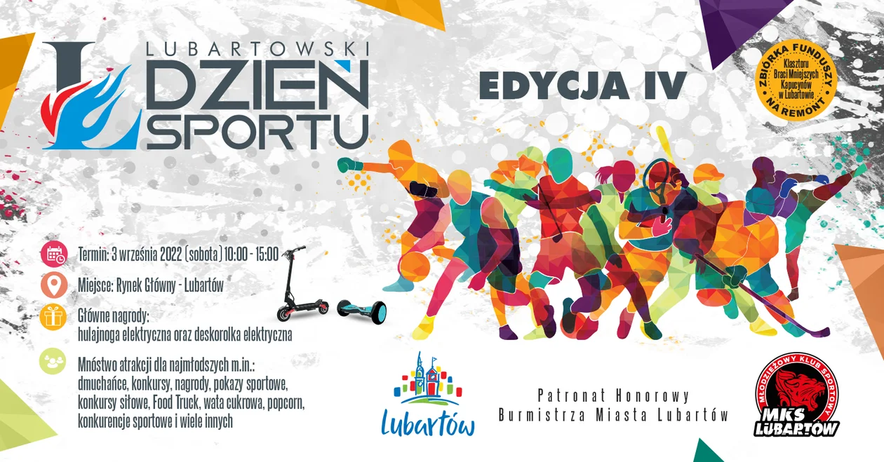 Lubartowski Dzień Sportu to festyn skierowany do wszystkich mieszkańców Lubartowa i okolic. Podczas tego wydarzenia Klubu/Stowarzyszenia/instytucje sportowe i nie tylko przedstawiają swoją ofertę na nadchodzący sezon! Celem imprezy jest pokazanie różnorodności dyscyplin jakie można uprawiać w Lubartowie.