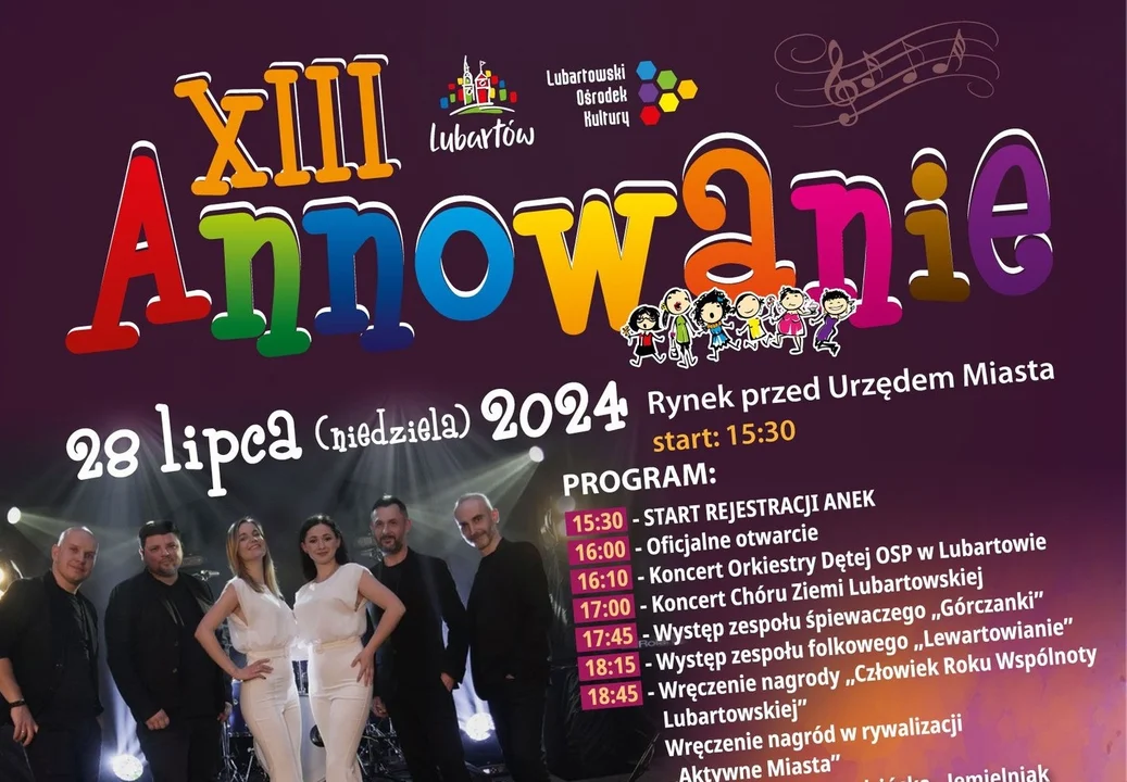Start imprezy w niedzielę 28 lipca o godz. 15:30. Wydarzenie odbędzie się pod znakiem przebojów Anny Jantar. Program „Tyle słońca w całym mieście” wykona zespół Cookies Band. W czasie wydarzenia odbędzie się również wręczenie nagród, w tym nagrody "Wydawnictwa Wspólnota" w plebiscycie "Człowiek Roku".