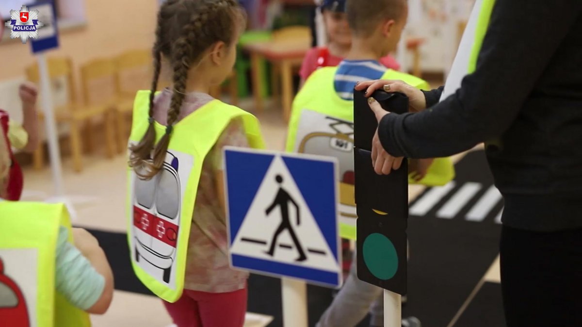 Mini znaki i sygnalizatory drogowe, maty antypoślizgowe z przejściem dla pieszych oraz makiety imitujące pojazdy to elementy jego wyposażenia, które mają służyć najmłodszym dzieciom podczas zajęć przedszkolnych.