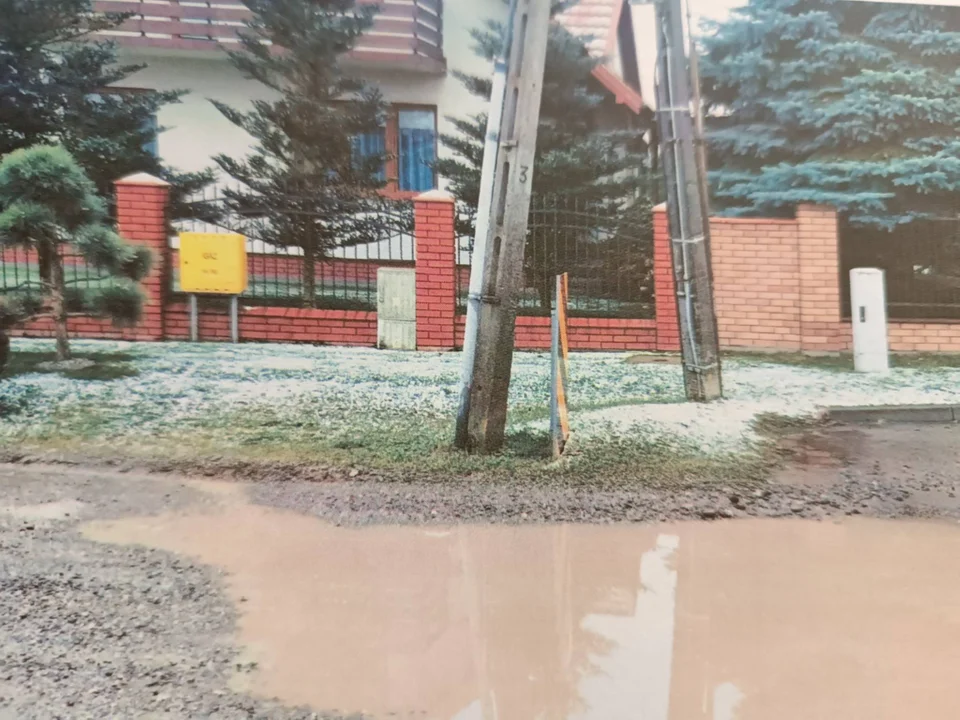 - Świerkowa ma duży spadek. Po deszczu można urządzać spływ kajakowy. Studzienki kanalizacyjne są zasypane, po deszczu śmierdzi. Droga jest od czasu do czasu wysypywana tłuczniem, ale to niewiele daje. Tłuczeń jest tak wysoki, że dostaje się na nasze posesje, na podjazdy - skarżyły się mieszkanki ulicy. Pokazywały zdjęcia ul. Świerkowej, której nawierzchnia cała jest dziurawa, w dołach tworzą się kałuże, można uszkodzić samochód.