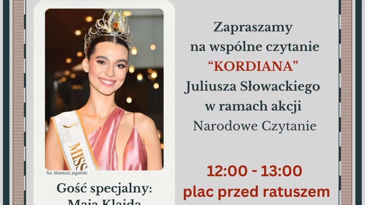 - Kordiana będzie czytała m.in. Miss Polonia 2024 Maja Klajda i duety niespodzianki oraz będzie scenka w wykonaniu młodzieży licealnej - zapowiada Miejska Biblioteka Publiczna im. Adama Mickiewicza w Lubartowie.