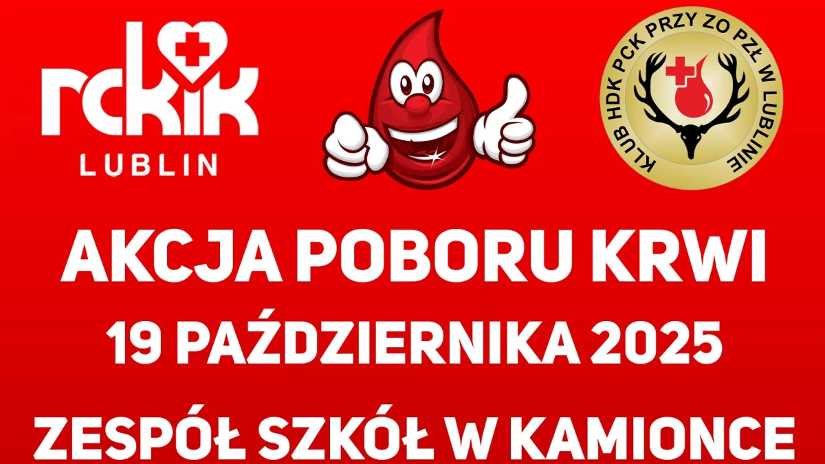 Akcja poboru krwi rusza 19 października o godz. 10 i potrwa do godz. 14. Organizatorzy akcji to RCKiK w Lublinie, Klub HDK przy PZŁ w Lublinie, KGW Nowoczesne Kury Domowe i Zespół Szkół im. Ks. Kardynała Stefana Wyszyńskiego w Kamionce.