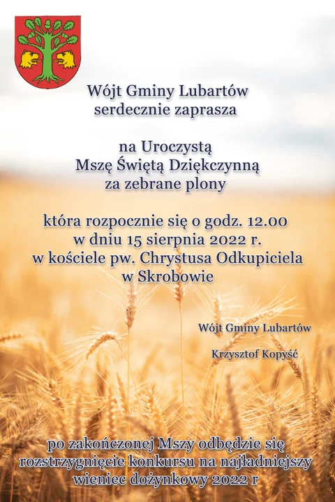 Informacje lubartowskieBędzie rozstrzygnięcie konkursu wieńców dożynkowych.