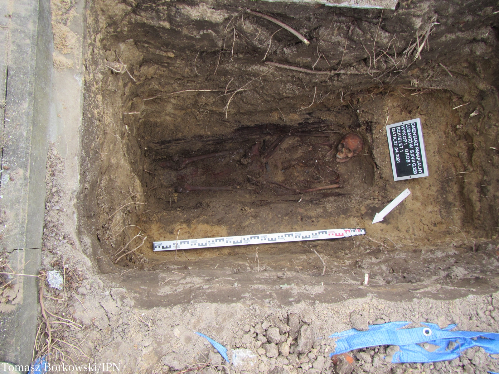 - W wyniki przeprowadzonych działań odnaleziono i podjęto szczątki należące do mężczyzny w wieku ok. 20-25 lat. Spoczywały one w pozostałościach trumny, co koresponduje z raportami PUBP w Lubartowie dotyczącymi odnalezienia zwłok partyzanta. W jamie grobowej ujawniono guziki, skórzany pasek oraz książeczkę (prawdopodobnie do nabożeństwa). Szczątki zostały przewiezione do Katedry i Zakładu Medycyny Sądowej UM w Lublinie, gdzie zostaną poddane badaniom medycznym oraz identyfikacji genetycznej - podaje IPN w komunikacie.