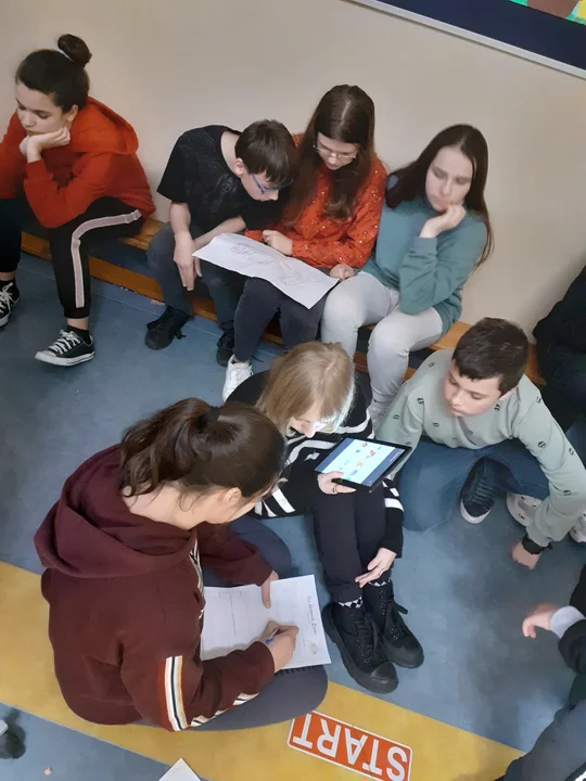 Uczniowie klas starszych, posługując się planem szkoły, szukali nietypowo ukrytych zadań zakodowanych kodami QR. Przy użyciu tabletów wyświetlali animacje, infografiki, interaktywne mini gry, dzięki którym mogli właściwie uzupełnić zadania na kartach gry. Aktywności skupiały się wokół tematu odpadów, ich właściwego segregowania, przetwarzania,