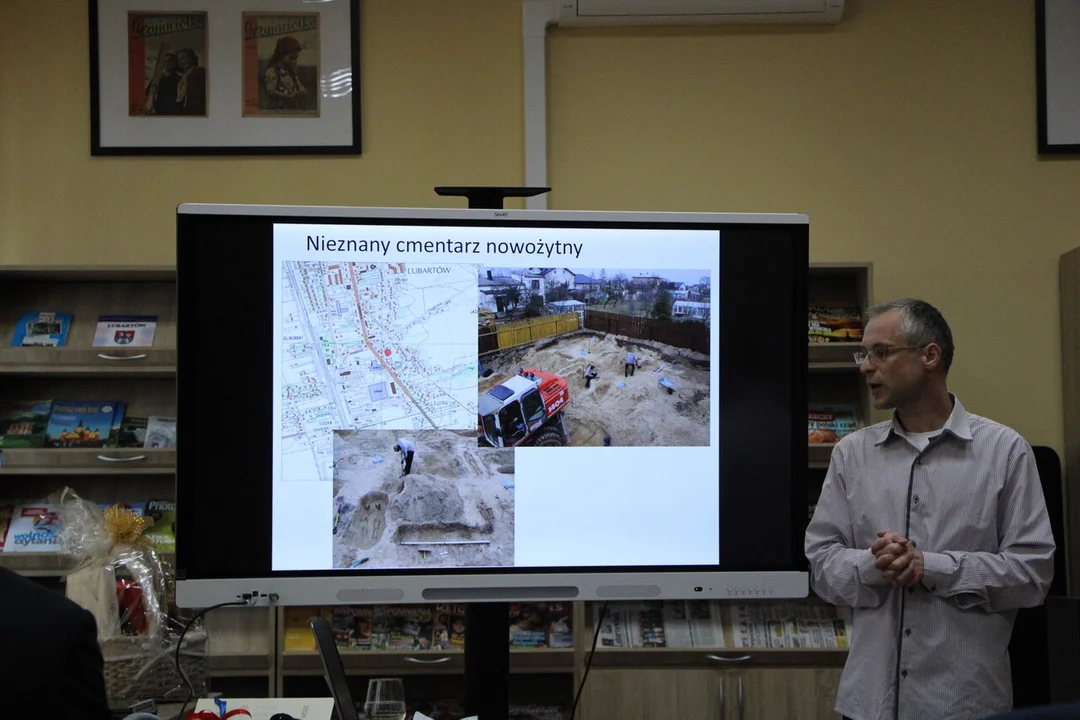 O nieznanym cmentarzu mówił archeolog mgr Michał Kubera w wykładzie w lubartowskiej bibliotece 15 maja.