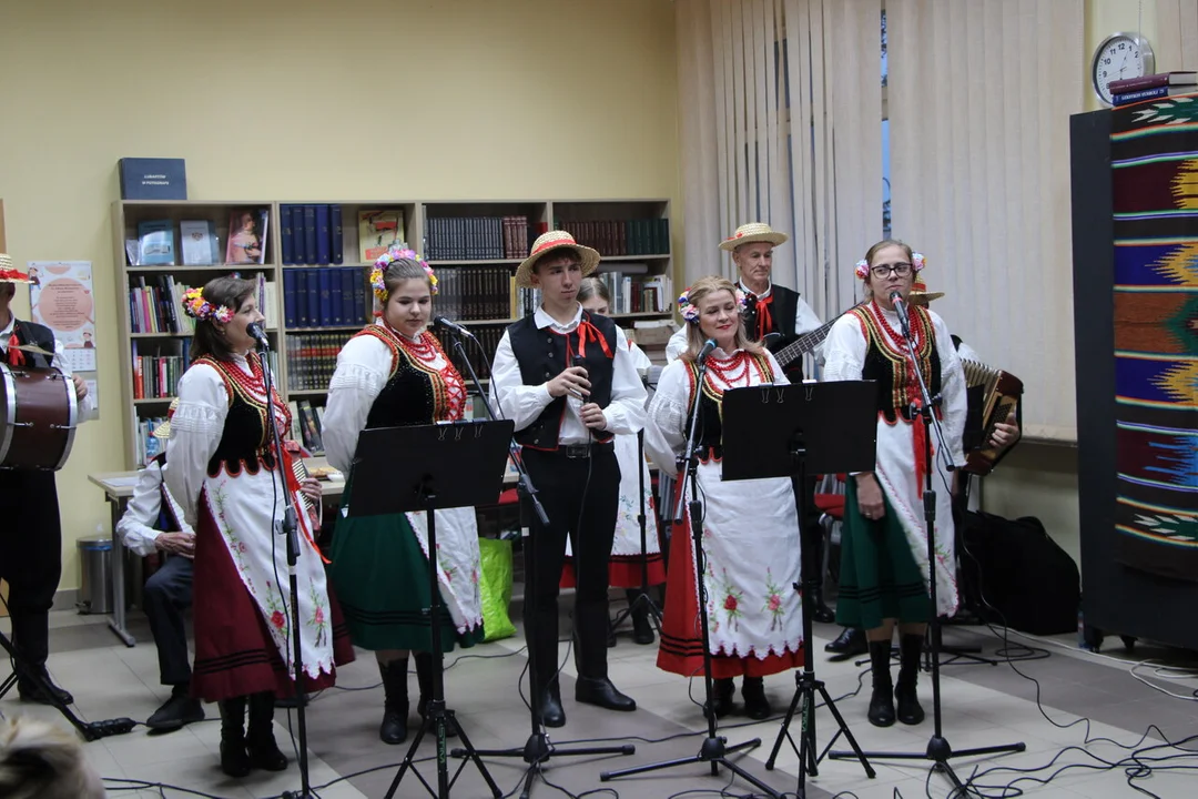 W piątek w bibliotece nie zabrakło atrakcji - odbyły się warsztaty kulinarne z KGW Malina z Nowodworu, wystawa ilustracji książkowych, zabawy dla dzieci. O godz. 18 zagrała kapela To i Owo z Kamionki.
