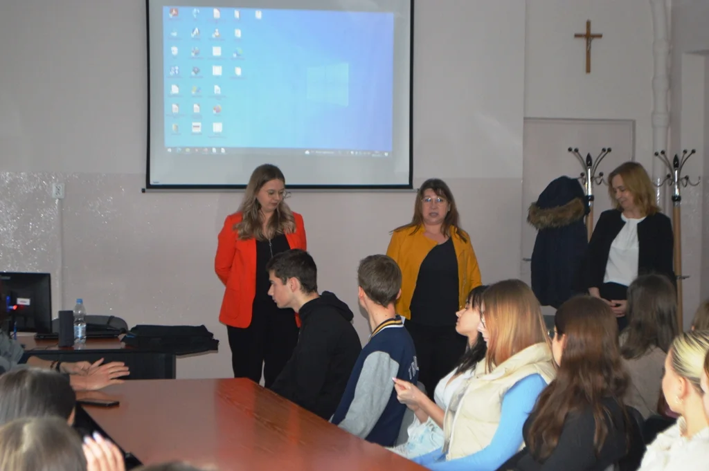 Na ostatnie zajęcia z doradztwa zawodowego zostały zaproszone specjalistki z Powiatowego Urzędu Pracy w Lubartowie. Panie Anna Najda i Małgorzata Matyjaszczyk zapoznały uczniów z ofertami rynku pracy w powiecie lubartowskim . Zasugerowały, w jakich kierunkach warto planować swoją drogę zawodową. Przedstawiły młodzieży propozycje kursów kwalifikacyjnych, szkoleń oraz staży proponowanych przez PUP. Specjalistki poinformowały, w jaki sposób uzupełnić niezbędną dokumentację .Informacje , które zostały przedstawione, pokazały uczniom, jak zmienia się rynek pracy i jakie stawia oczekiwania oraz jakie daje możliwości rozwoju.
