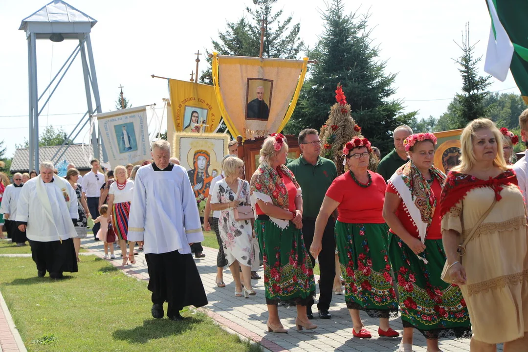 Po mszy wierni z chorągwiami i wieńcami dożynkowymi przeszli wokół kościoła w uroczystej procesji.