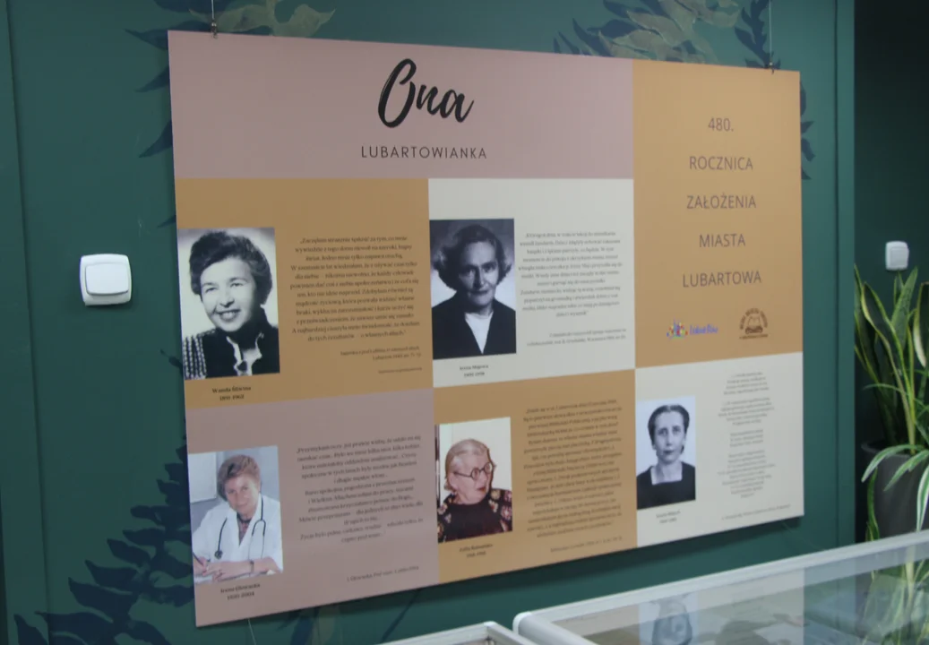 Plansza z potretami pięciu lubartowskich kobiet, które zaznaczyły swoją obecność w historii miasta, zajmuje centralną część wystawy.Jej bohaterki to: