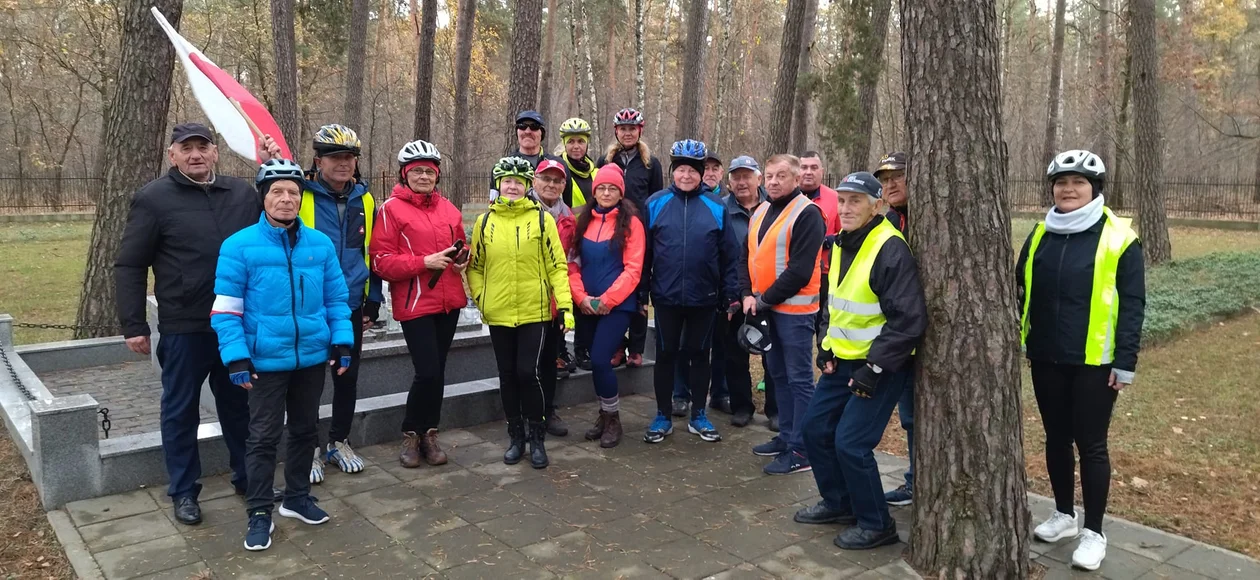 Po chwili refleksji wyruszyliśmy malowniczą trasą w barwach jesieni do Sobolewa na cmentarz bohaterów z okresu Powstania Styczniowego. Po przypomnieniu historii bitwy przez kolegę Zbyszka zapaliliśmy światełko naszej pamięci. W drodze powrotnej na zaproszenie kolegi Rysia wstąpiliśmy na przygotowany przez niego poczęstunek. Po zregenerowaniu sił udaliśmy się w kierunku naszych domów radośni i dumni ze spełnionej misji ,,Chwała i Cześć Poległym Bohaterom".Nasza grupa liczyła około 30 osób. Przejechaliśmy 34 km. Dziękujemy uczestnikom Rajdu i zapraszamy do wspólnych wypraw rowerowych w 2023r.