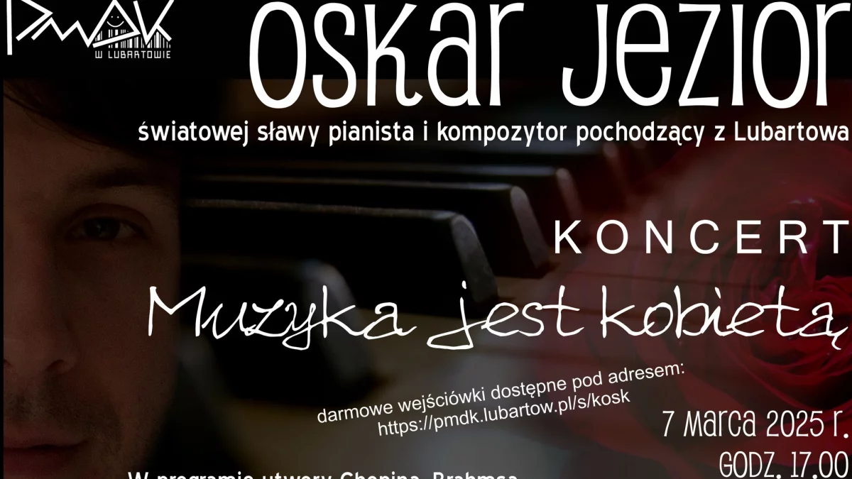 W najbliższy piątek,7 marca w Państwowym Młodzieżowym Domu Kultury w Lubartowie o godz. 17 będzie światowej sławy pianista i kompozytor pochodzący z Lubartowa p. Oskar Jezior. Marzeniem p. Oskara było i jest zagrać dla podopiecznych z naszego Hospicjum. Wstęp na Koncert jest wolny. Będzie to również okazja do złożenia datku na rzecz Hospicjum - parafia św. Anny zachęca do udziału w koncercie.