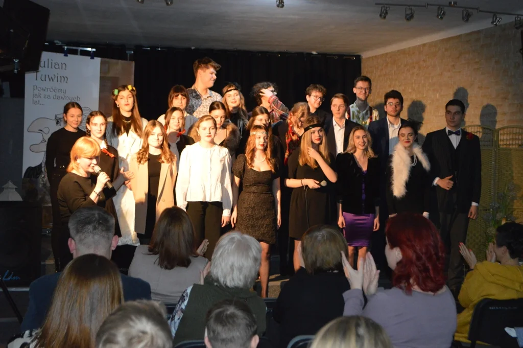 Stare polskie tango „Powróćmy jak za dawnych lat…” rozpoczęło 10 stycznia 2023 roku spotkanie w Kawiarni Poetów działającej w II LO im. Piotra Firleja w Lubartowie. Wieczorek poetycki poświęcony był twórczości Juliana Tuwima, jednego z najwybitniejszych polskich twórców XX wieku, który wraz z przyjaciółmi z grupy poetyckiej Skamander rządził poezją dwudziestolecia międzywojennego. To właśnie w bieżącym 2023 roku obchodzimy 70. rocznicę śmierci „księcia poetów”, jak nazywano Tuwima.