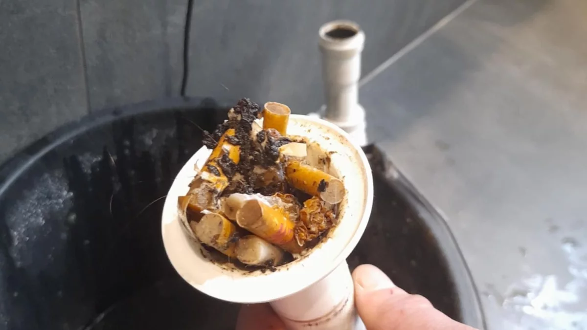 "Kolejny przykład na bezmyślność a nawet głupotę ludzką - syfon umywalki z miejskiej toalety (poniżej zdjęcie).