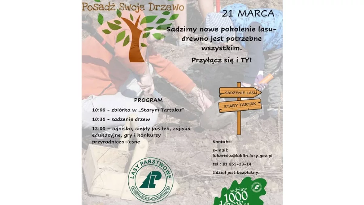 Uczestnicy akcji „Posadź Swoje Drzewo” potykają się o godzinie 10:00 przy Domu Myśliwskim Stary Tartak, skąd wspólnie ruszą sadzić młode pokolenie lasu.