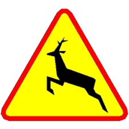 O niebezpieczeństwie związanym z pojawieniem się dzikich zwierząt informuje znak A18b "Dzikie zwierzęta". Ostrzega kierowcę, że ryzyko wbiegnięcia dzikiej zwierzyny na drogę jest większe niż w innych miejscach.