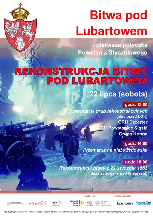 O godz. 13.00 będzie prezentacja grup rekonstrukcyjnych na placu przed UM, następnie w okolicy plaży żydowskiej nad rzeką Wieprz o godz. 16.00 zaplanowano rekonstrukcję bitwy z 22 stycznia 1863 roku.