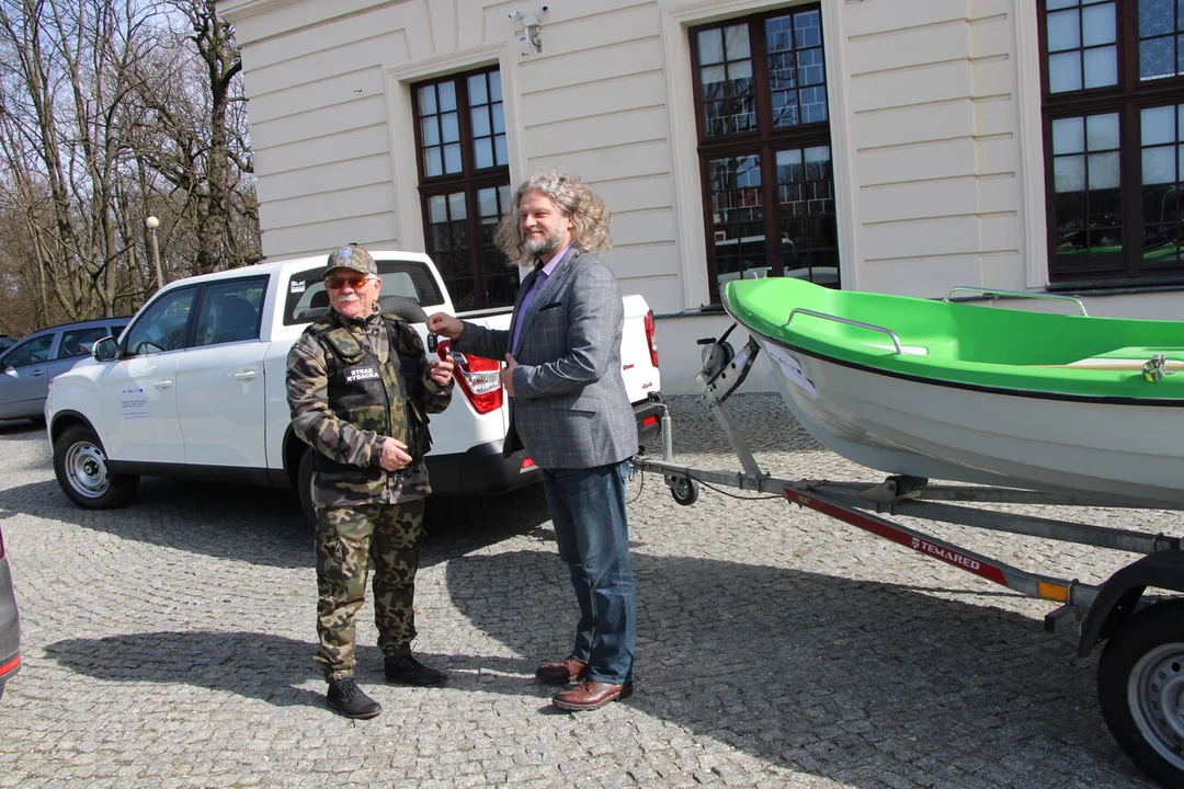 Przekazano nowy samochód terenowy z łodzią patrolową. Oprócz niego m.in. 41 kompletów umundurowania, 6 kamerek i 6 zestawów akcesoriów do nich, 2 drony, 18 latasrek diodowych, 6 lustrzanek, 18 lornetek i inne wyposażenie