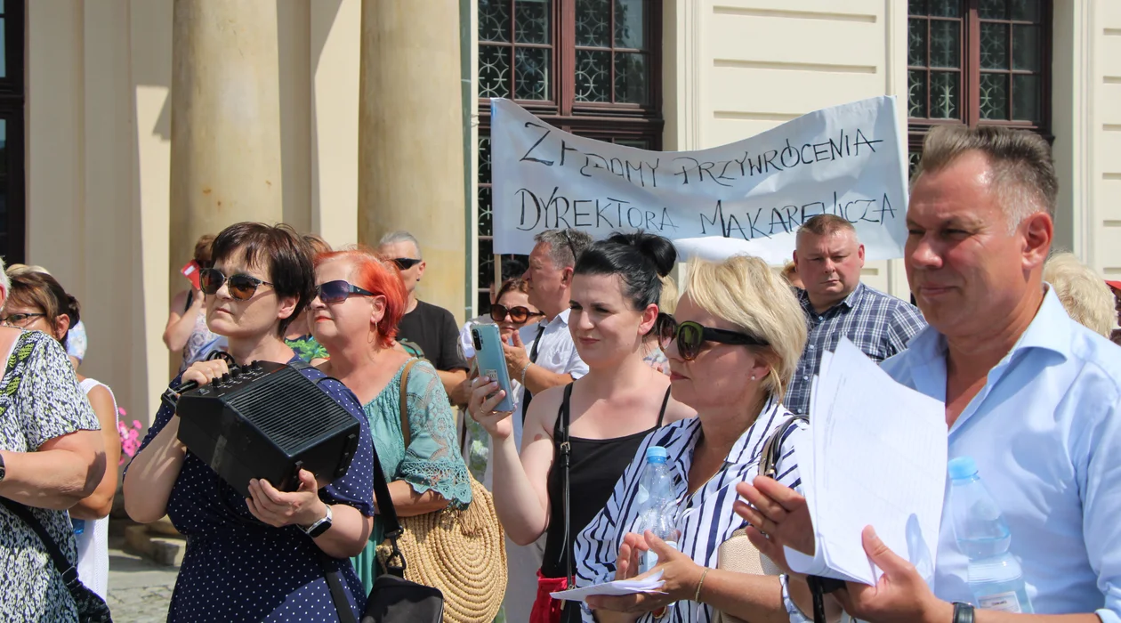 Dyrektor został odwołany 28 czerwca. Duża część pracowników sprzeciwia się tej decyzji zarządu powiatu. Przyszli dziś pod starostwo, żeby zaprotestować przeciw odwołaniu dyrektora.